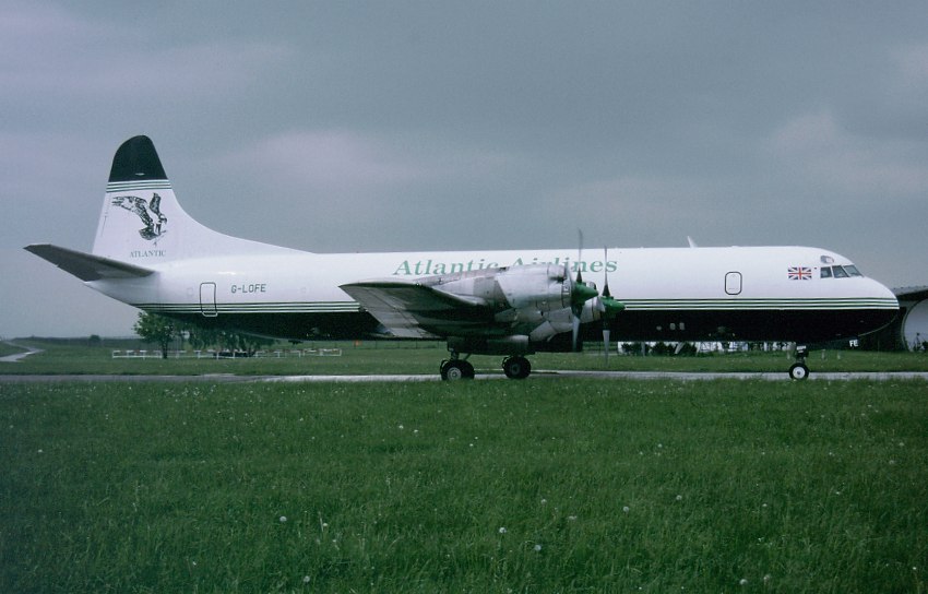 The "Electra" now flying in these colors with Atlantic Airlines titles.