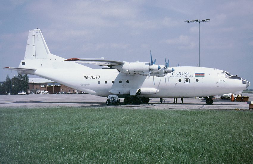 Antonov AN-12BP 4K-AZ18 (cn. 9346308) SXF May 16th. 2002 (photo by Michael Kubatz)