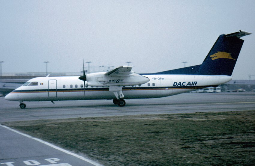 DeHavilland DHC 8-300 YR-GPW (cn. 267) SXF February 03rd. 1997 (photo by Frank Meissner)
