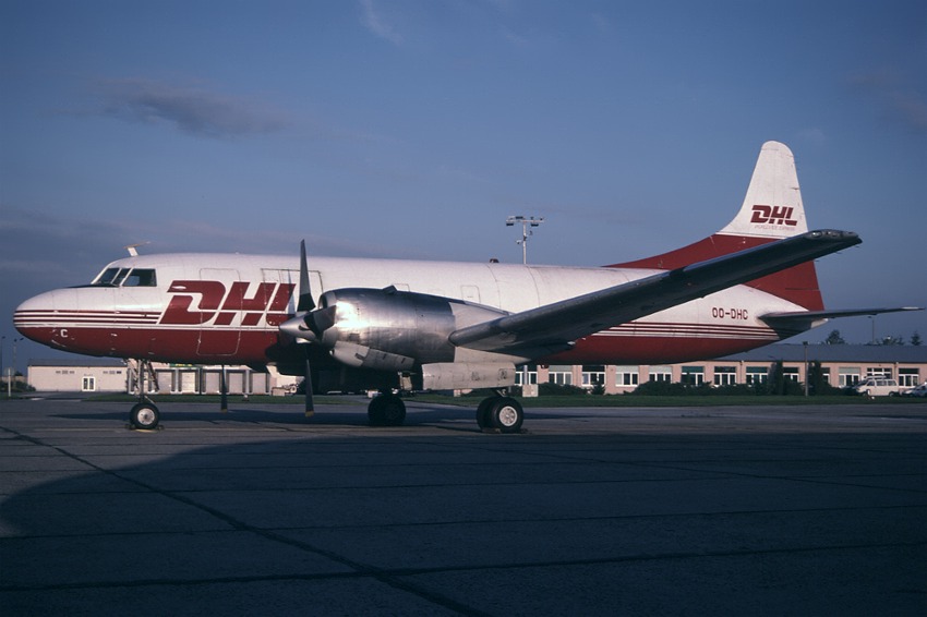 Convair CV-580(F) OO-DHC (cn. 68) SXF July 12th. 1998 (photo by Michael Kubatz)