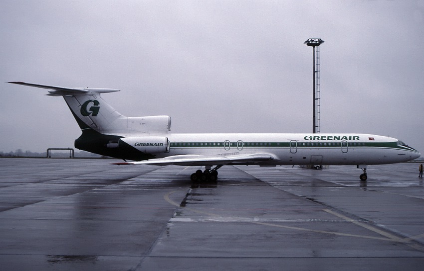 Shortly before the demise of Greenair, the TU-154Ms were repainted back with russian registrations. However, the visible registrations on the planes were much more than small and in this way not to recognize here on the center engine.