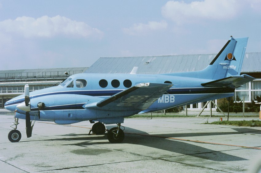 Beechcraft-90 "King Air" OY-MBB (cn. LJ-848) SXF September 04th. 1981 (photo by Rainer Ness)