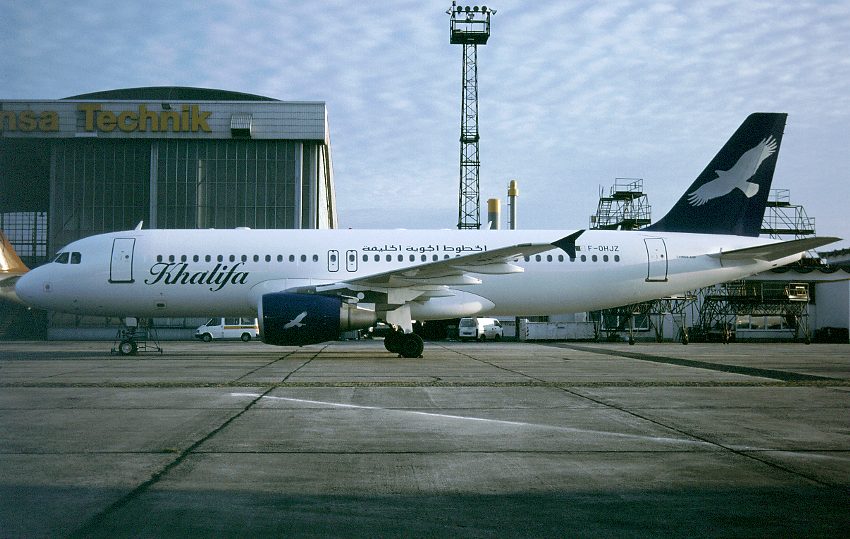Khalifas newest Airbus 320, which were admitted in the french overseas register, were also included in the maintenance contract with Lufthansa. Due the following bankruptcy they were rarely visitors at SXF.