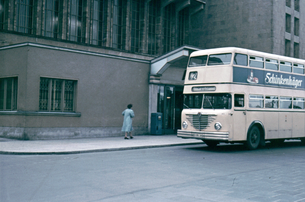 Eingang zum "alten Abflug" mit BVG Doppeldecker THF-1957 - (photo BFG Archiv) |