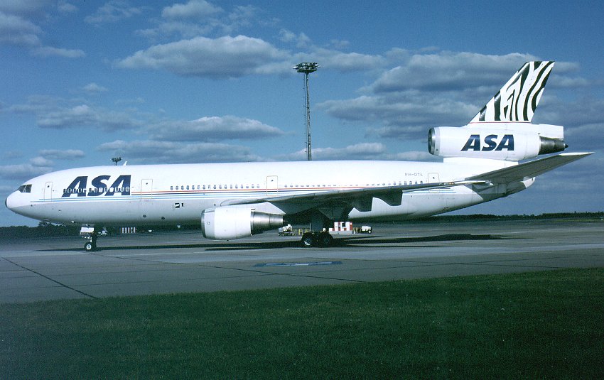 The first wide body aircraft for ASA is seen here after push back and the DC-10 was re-registered to 5Y-MBA three years before it was sold in 2002.
