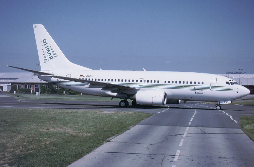 Boeing 737-700 D-AGEV (cn. 28105) SXF May 24th. 1999 (photo by Michael Kubatz)
