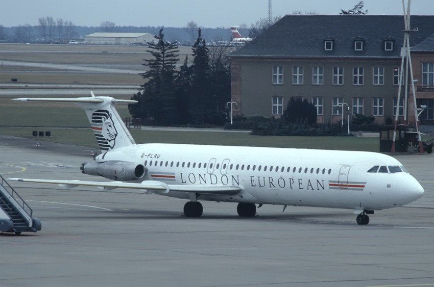 BAC 111-500 G-FLRU (cn. 201) SXF February 21st. 1991 (photo by Andreas Himm)