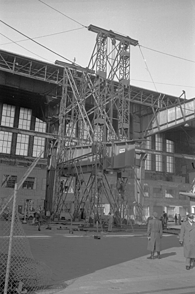 Wiederaufbau der Halle 5 durch Peiner Stahlbau - THF 1952 (Photo BFG Archiv)