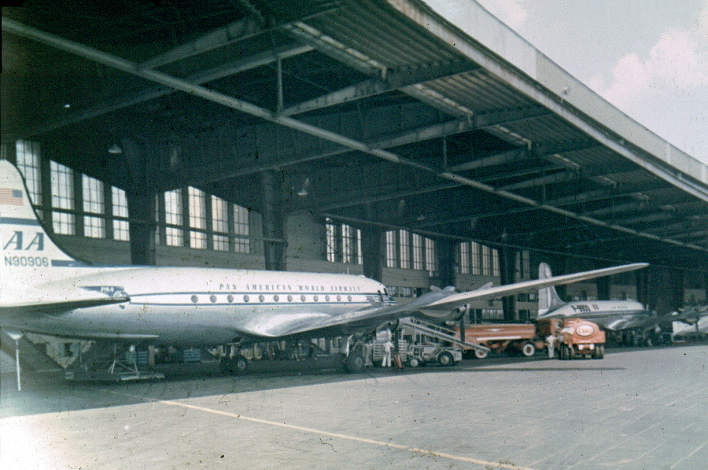 Pan American Airways und Air France Douglas DC-4 unter dem Vordach - THF 1957 - (photo BFG Archiv)